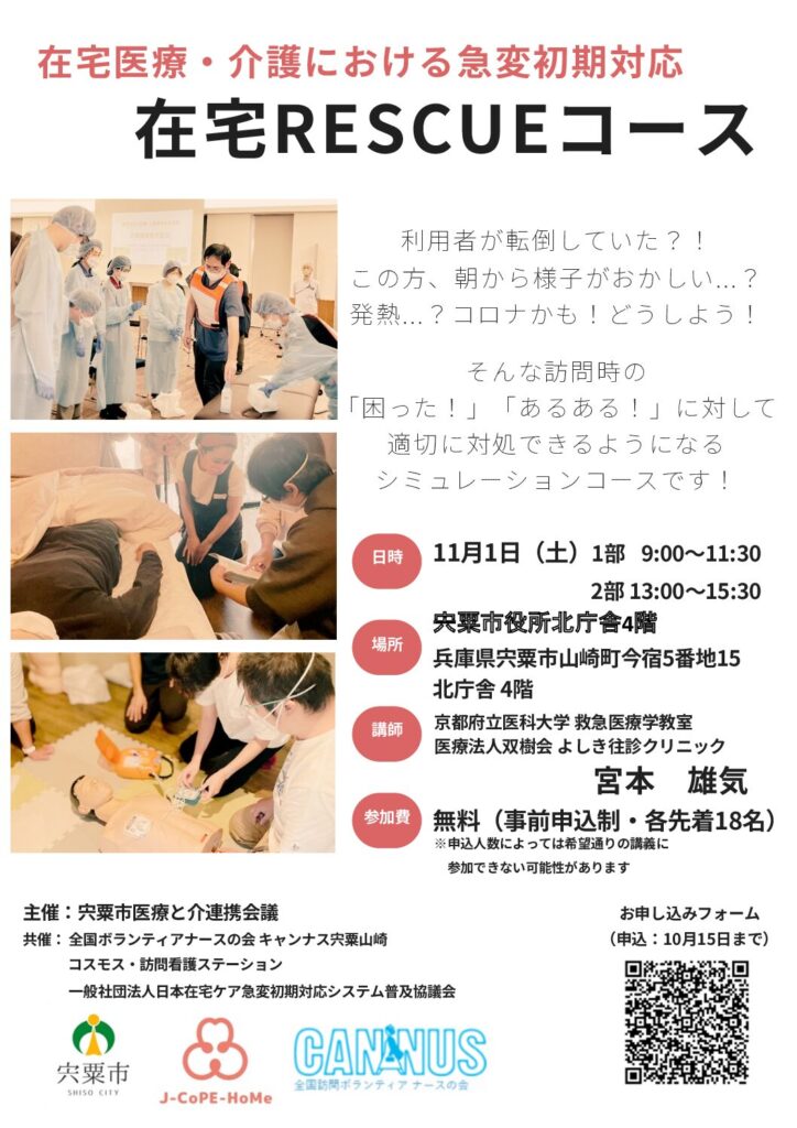 本協議会では、ベーシックコースをはじめとした 在宅RESCUEコース(Report, Evaluate and Support Care for Unexpected Emergency)と呼ばれるシミュレーションコースを用意しています。